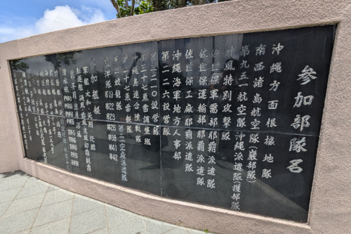 沖縄で戦った部隊の隊員だけではなく、沖縄戦に参加した部隊も共に祀られているこちらの塔。