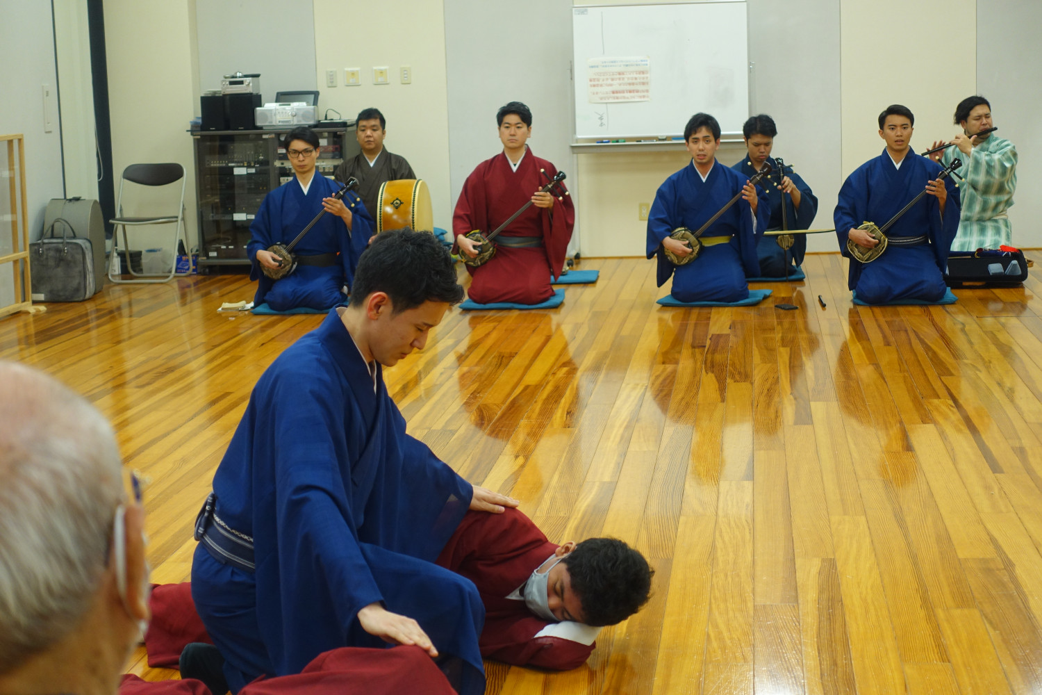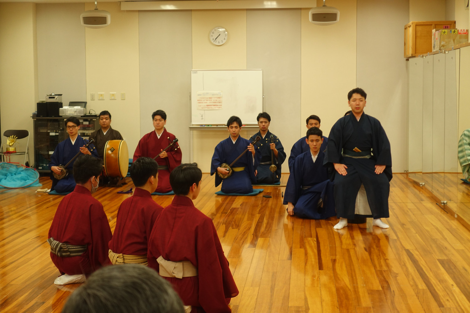 研修期間は3年間で、代表的な演目の習得を目指します。ほかにも、舞踊や楽器、発声方法や身体作り、作法を学ぶ研修も。さらに、琉球芸能史や琉球方言に関する講義を受けたり、歌舞伎やオペラの鑑賞をする研修もあるそうです。そして研修の成果を、一年に二回の発表会で披露する場が設けられています。