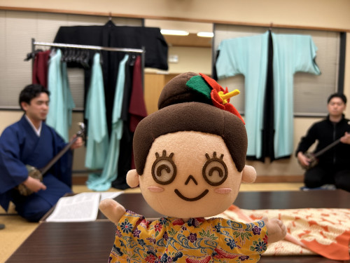 まずは歌三線のお二人の楽屋にお邪魔しました!優しくマハエを迎えてくれたお二人でしたが、三線を奏で始めるとキリっと真剣な表情に。目の前で歌って頂き、とても迫力がありました!!