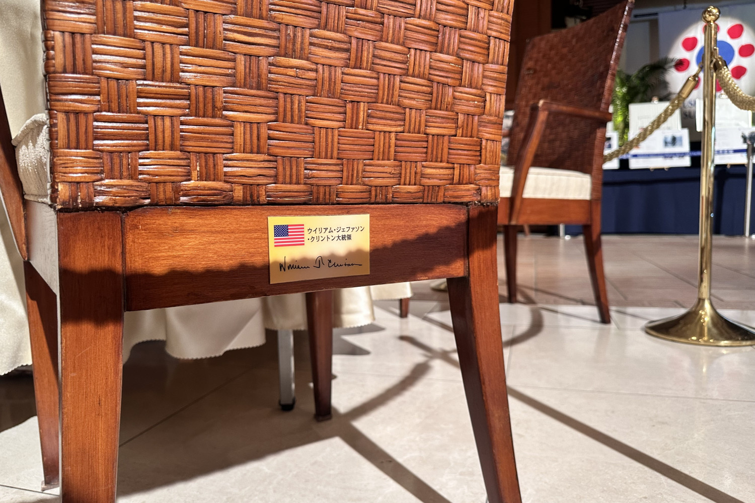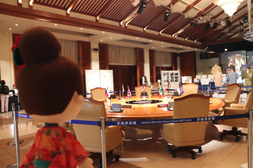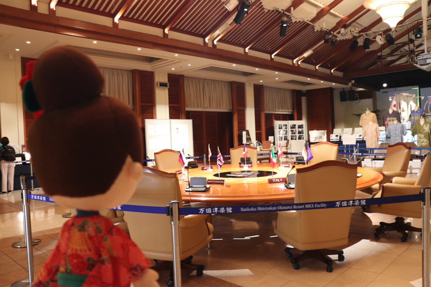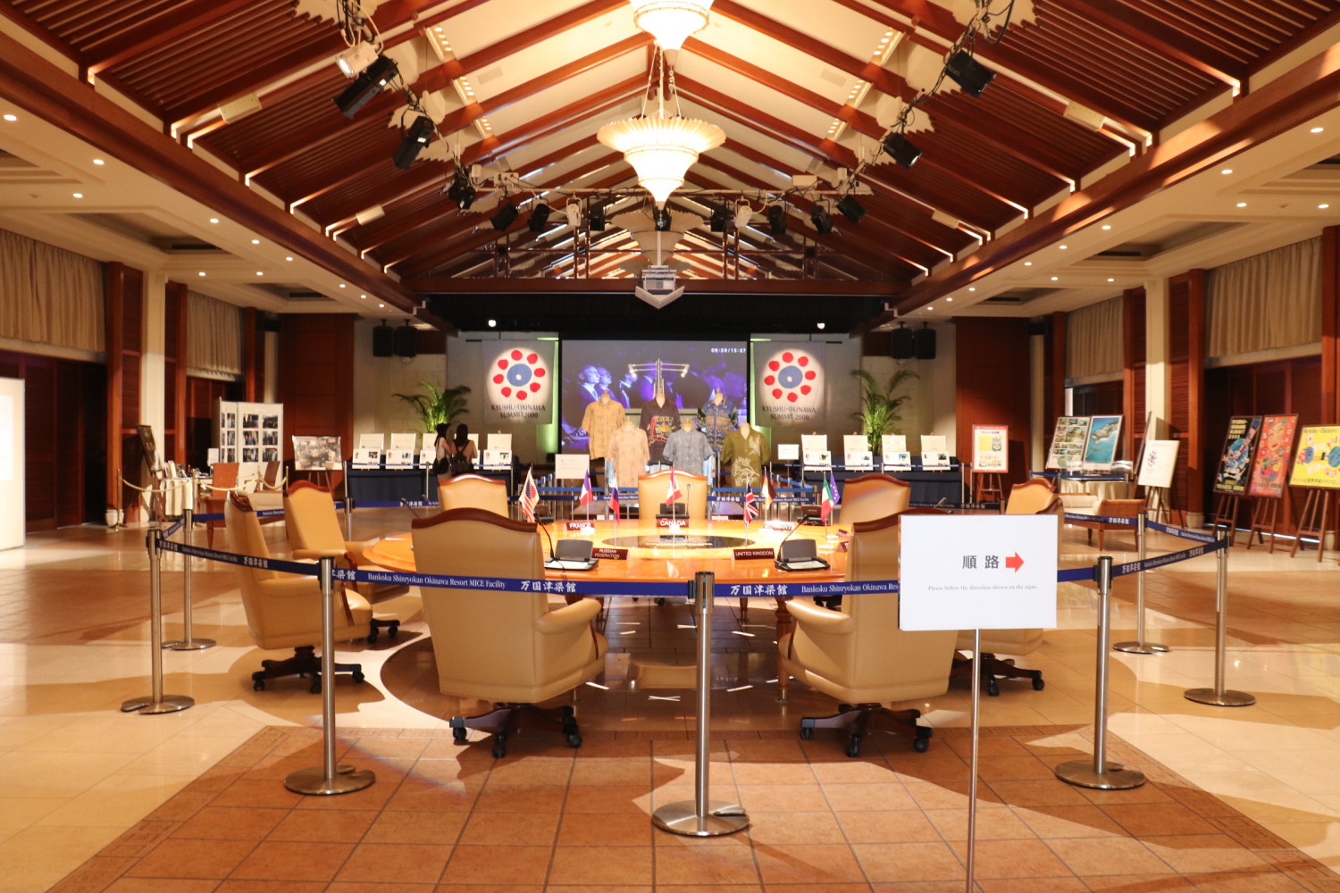会場に入ってまず目を引くのが、実際に2000年のサミットで使用された円卓。