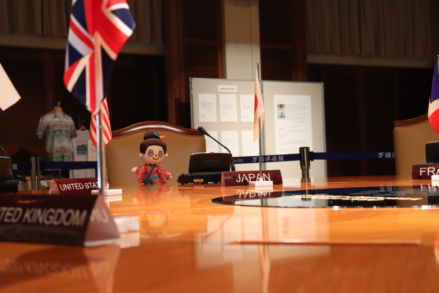 このテーブルで、各国首脳の方々が世界の課題について語り合ったと思うと、なんだか歴史の重みを感じたよ~。