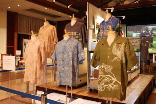 沖縄らしさ光るのが、実際に首脳の方々が着用した「かりゆしウェア」の展示。