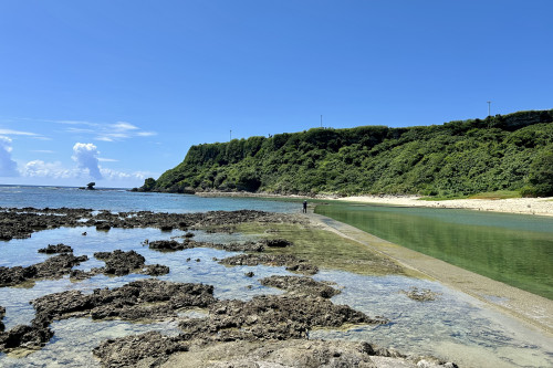 玻名城ビーチは、山と海に囲まれた自然豊かなビーチです。
