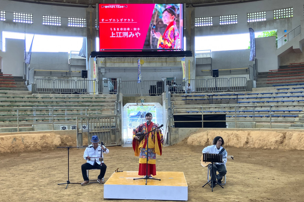 オープニングアクトでは、地元の沖縄民謡アーティストがライブを行います。沖縄民謡は、島の豊かな自然や人々の生活、歴史が深く刻まれた伝統音楽です。このライブでは、沖縄特有の三線(さんしん)と呼ばれる楽器や、リズム感豊かな太鼓などを使い、郷土色豊かな音楽を楽しめます。また、観光客にとっては沖縄の文化に触れ、地元の人々とのつながりを感じる特別なひとときとなるでしょう。ぜひ、沖縄の「うた」と「こころ」を感じるオープニングにご注目ください。