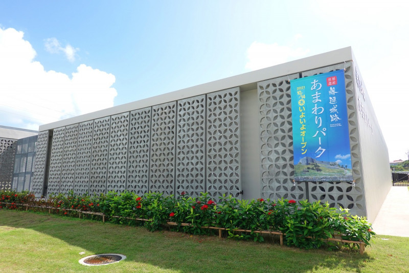 あまわりパークは、勝連地域の英雄「肝高の阿麻和利(きむたかのあまわり)」にちなんだ歴史文化施設で、勝連城跡から見つかった出土品の展示や、写真、映像などを使った展示により、勝連城跡を中心とするうるま市の文化や歴史を楽しみながら学ぶことができる施設です。