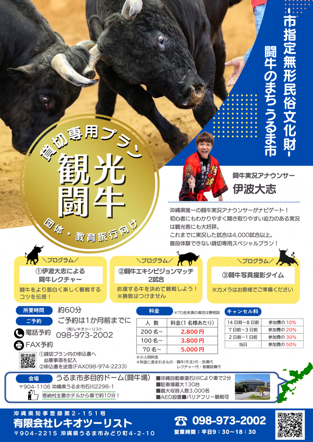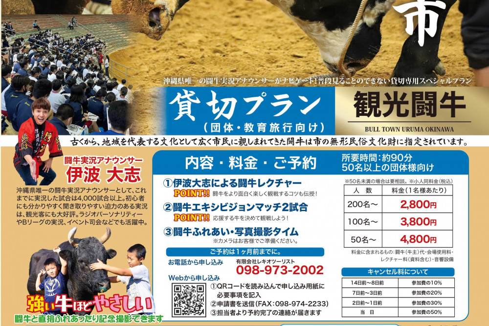 ※料金には、闘牛(牛主)代、会場施設使用料、闘牛レクチャー料が含まれます。