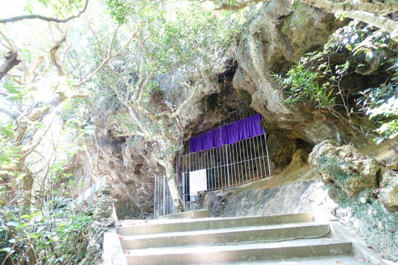 シルミチューは、琉球開びゃくの祖神、アマミチュー(アマミキヨ)、シルミチュー(シネリキヨ)が住み子供をもうけたと伝えられている場所で、うるま市浜比嘉島(はまひがじま)の兼久集落の南側山中にある大きな洞穴です。鳥居をくぐり108段の石段を登りきると、それまでとは違う少しひんやりとした空気を感じ洞穴があらわれます。