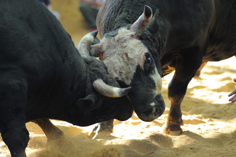 沖縄の闘牛は、古い歴史を持ちます。定かではありませんが、十七世紀にさかのぼると言われ、農村娯楽、伝統娯楽として受け継がれてきました。「ウシオーラセー」と言って農家の人々は、牛と牛のぶつかり合いを楽しみのひとつとし、農耕のかたわら手塩にかけて牛を育てました。ウシオーラセーの晴れ舞台に出すことを誇りにし、連勝を続ける強い牛を持てばその家の裕福なあかしとして羨ましがられたそうです。娯楽の乏しかった時代、ウシオーラセーは農家の人々にとって最大の娯楽とも言えます。