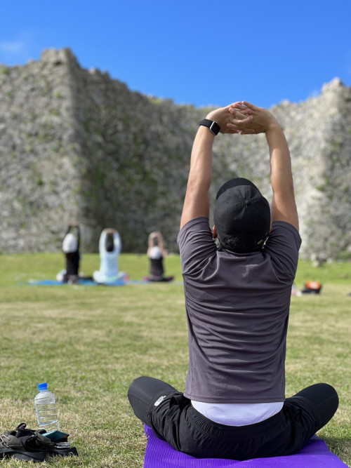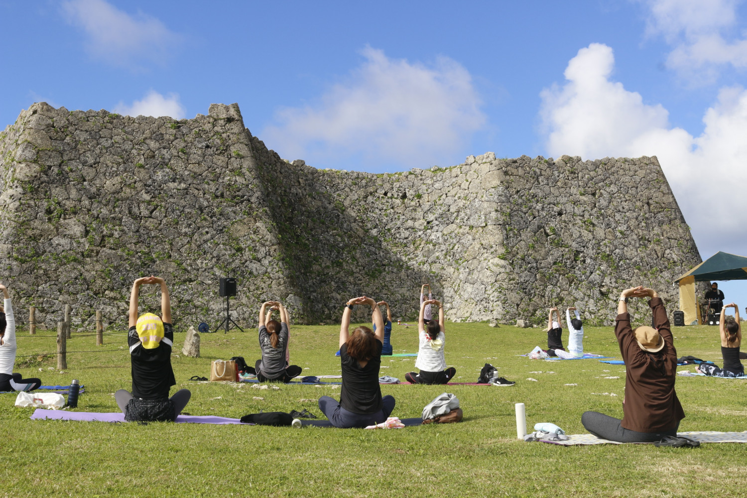琉球王朝時代の記憶を今に伝える世界遺産「中城城跡」で行うウェルネスヨガです。世界遺産のパワーと大地・天・海からのエネルギーを深い呼吸と流れるような動きで全身に取り込むことができます。