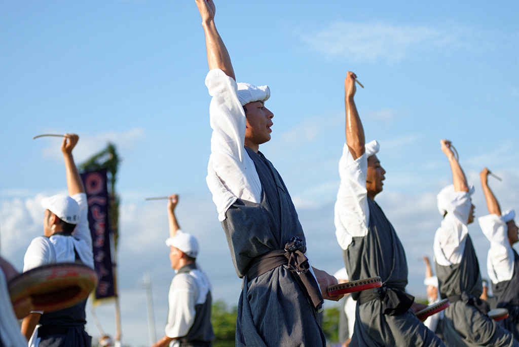 うるま市は「伝統エイサーの郷」と言われ、格式のあるエイサーが残っています。青年会によって衣装も地域ごとに特徴があり、白とグレーのシンプルな衣装から、黒地に金の刺繍が施された豪華な衣装、花笠などバラエティーに富んでいます。衣装も、踊りも、かけ声も違う沖縄県でも有数のエイサーどころうるま市。本場の伝統芸能と躍動感を体感することができます。