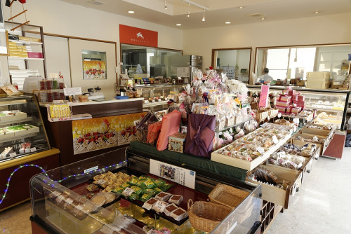 うるま市特産の「黄金芋(くがにいも)」とうるま市の特産品である有名な「ぬちまーす」という塩を使用した「うるまの埋蔵金」と山芋シフォンケーキがイチ押しです!
