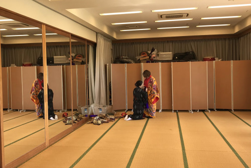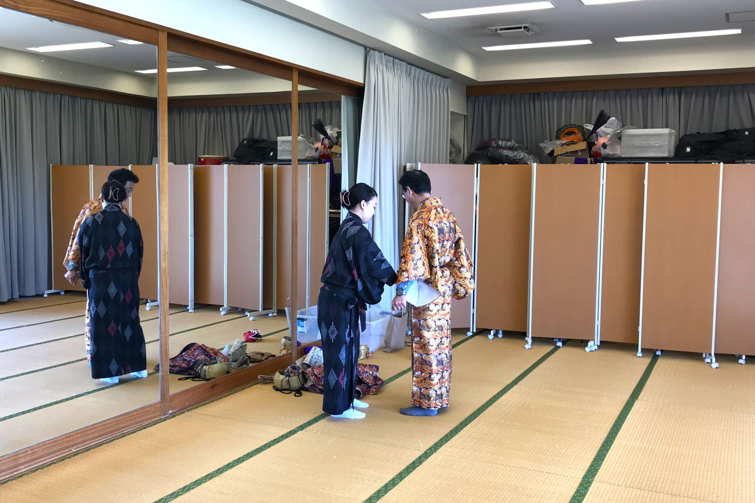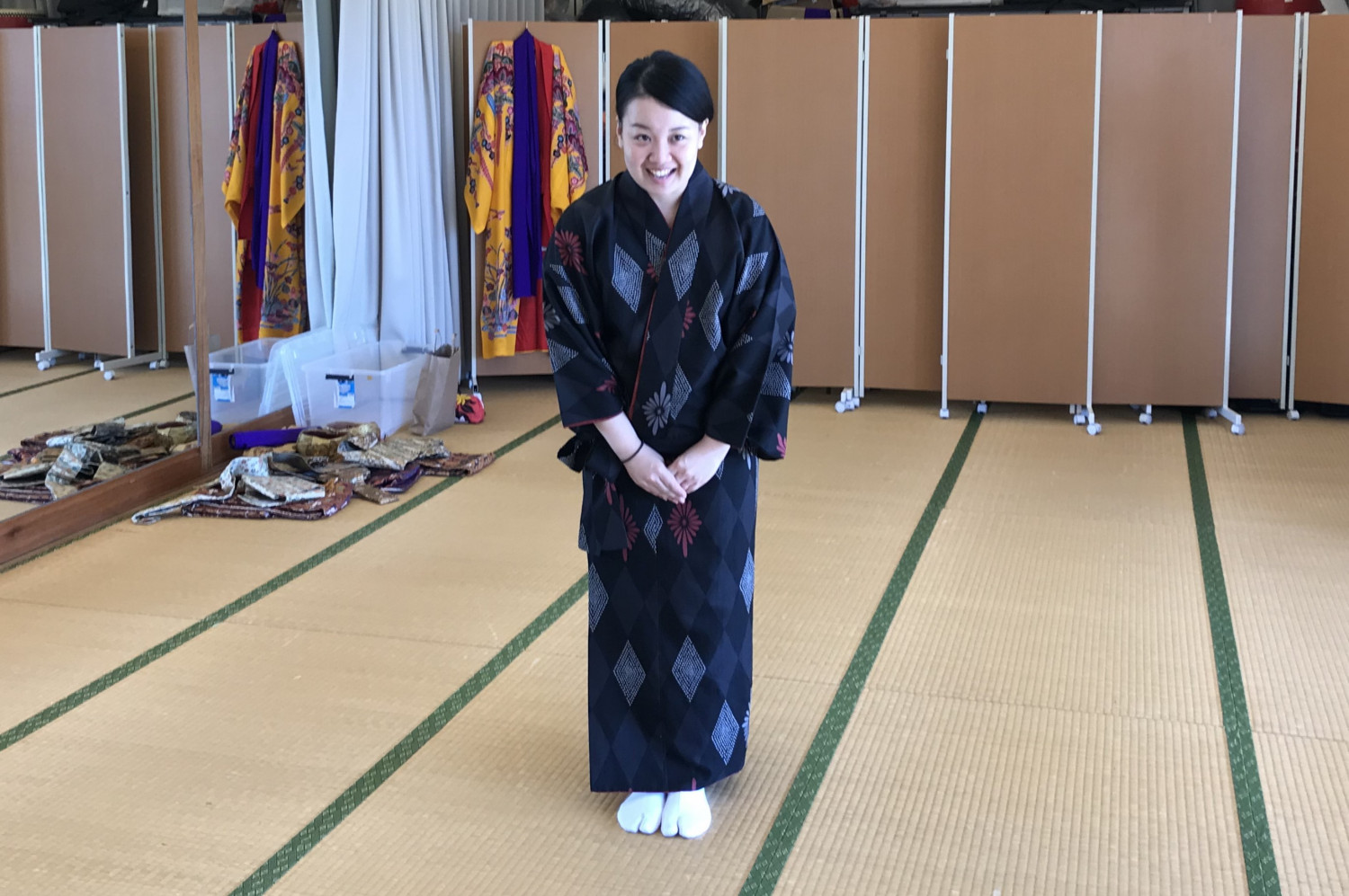 琉球衣装着付け体験は琉球舞踊の先生に直接着付けしていただきます。