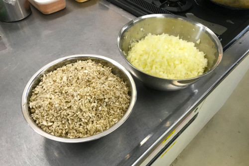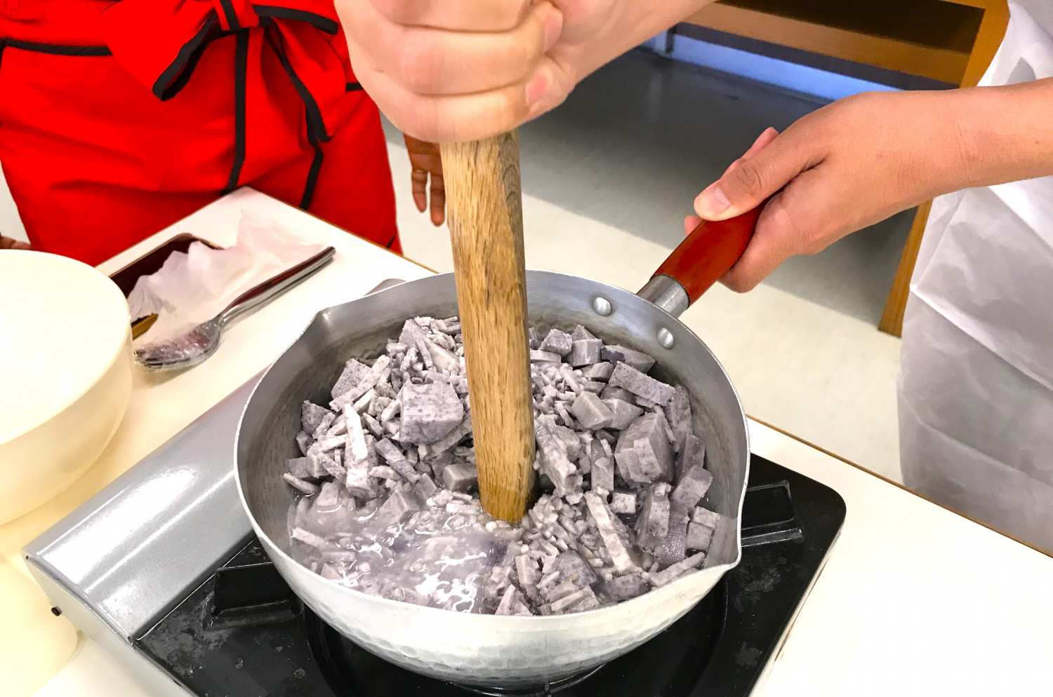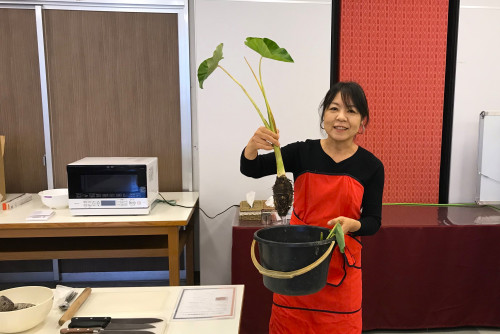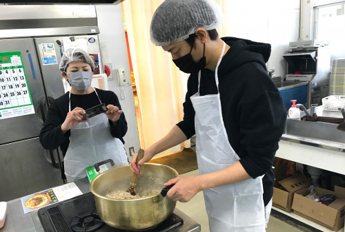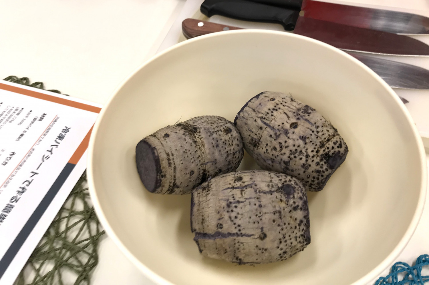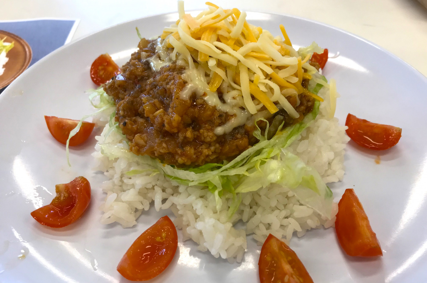 金武町の特産品を使った「田芋(ターム)パイ」や金武町が発祥の地「タコライス」を作ります。完成品はみんなで試食します。