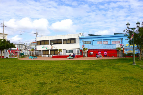 金武町の新開地エリアは、大人の修学旅行で是非訪れていただきたい場所です。グループで写真を撮り合い、お腹がすいたらアクティブパークでタコライスを食べて・・・楽しいですよ。そして夜の新開地はガラッと雰囲気が変わります。どのお店に行こうか迷う時はガイド付きナイトツアーもありますので金武町観光協会までご連絡ください。
