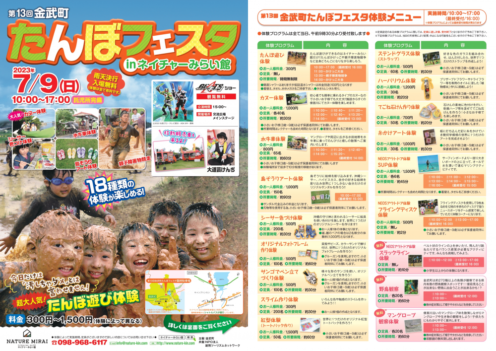 ネイチャーみらい館では、ご家族やグループで楽しめるイベントを毎年企画しています。今年も開催予定です。是非、イベント日程に合わせて金武町にお越しください。詳しくはネイチャーみらい館ホームページをご確認下さい。
