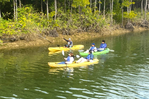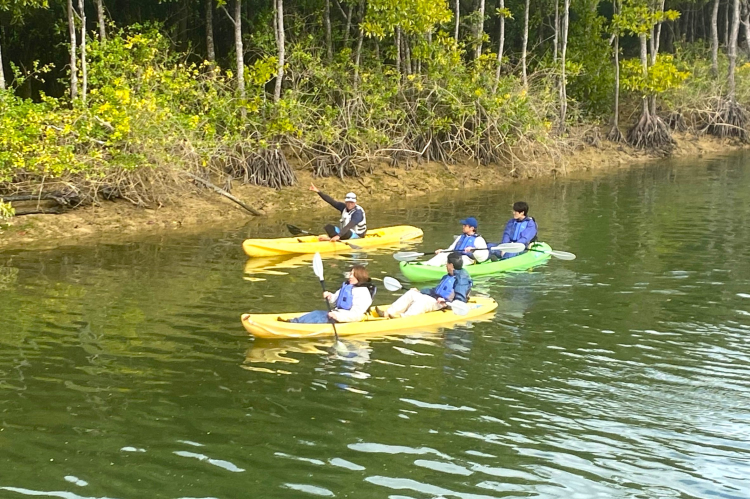 沖縄・金武町の億首川でマングローブ林をカヌーで軽やかに!別名:“海の森”と呼ばれる自然のマングローブを目の前で見ることができます!また、マングローブ林で休憩する様々な鳥たちとも会えます。