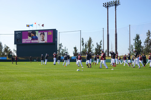 金武町ベースボールスタジアムは平成23年12月にオープンした天然芝の野球場です。最大2,142人を収容できる観客席と電光掲示板などを備えた本格的なつくりが特徴で、町民をはじめ県内の大会に利用されています。また、東北楽天ゴールデンイーグルスや韓国のプロチームKIAタイガースなど、プロ野球球団や大学の野球部が春季キャンプなどで活用されています。