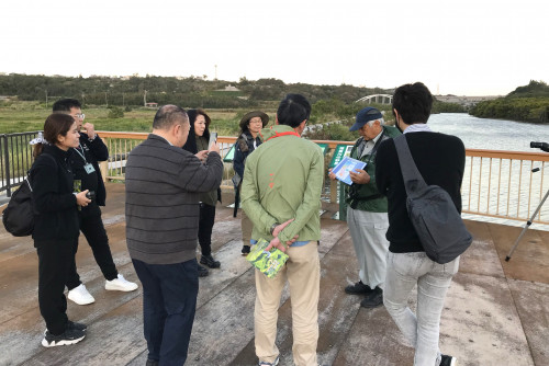 金武町は沖縄県のほぼ中央部の東海岸沿いに広がる町で、豊かな湧水や河川水を利用した水田や田芋畑などが多く、億首川沿いには汽水域が見られ、メヒルギやオヒルギなどのマングローブ植物がまとまって生えている場所もあります。こうした環境には数多くの生き物がすみ、特に野鳥の宝庫な地域となっています。早起きして活動し始めたそれらの野鳥を観察します。