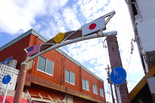 一方で、キャンプ・ハンセン旧ゲート1前には、「新開地」というアメリカ文化の影響を色濃く受けた町並みが広がります。