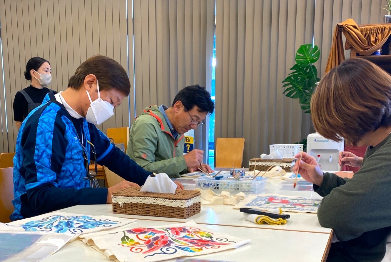 鮮やかな色合いの中にしっとりとした落ち着きを持つ現代沖縄の紅型染め体験ができます。染めた作品は持ち帰り、約一週間後にご自身で仕上げていただきます。