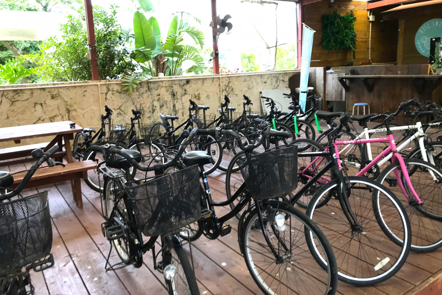 本格的なマウンテンバイクからママチャリタイプ、お子様用の自転車まで各種、各サイズ準備されているので、グループやご家族で金武町ののどかな田園風景をサイクリングで楽しむことができます。
