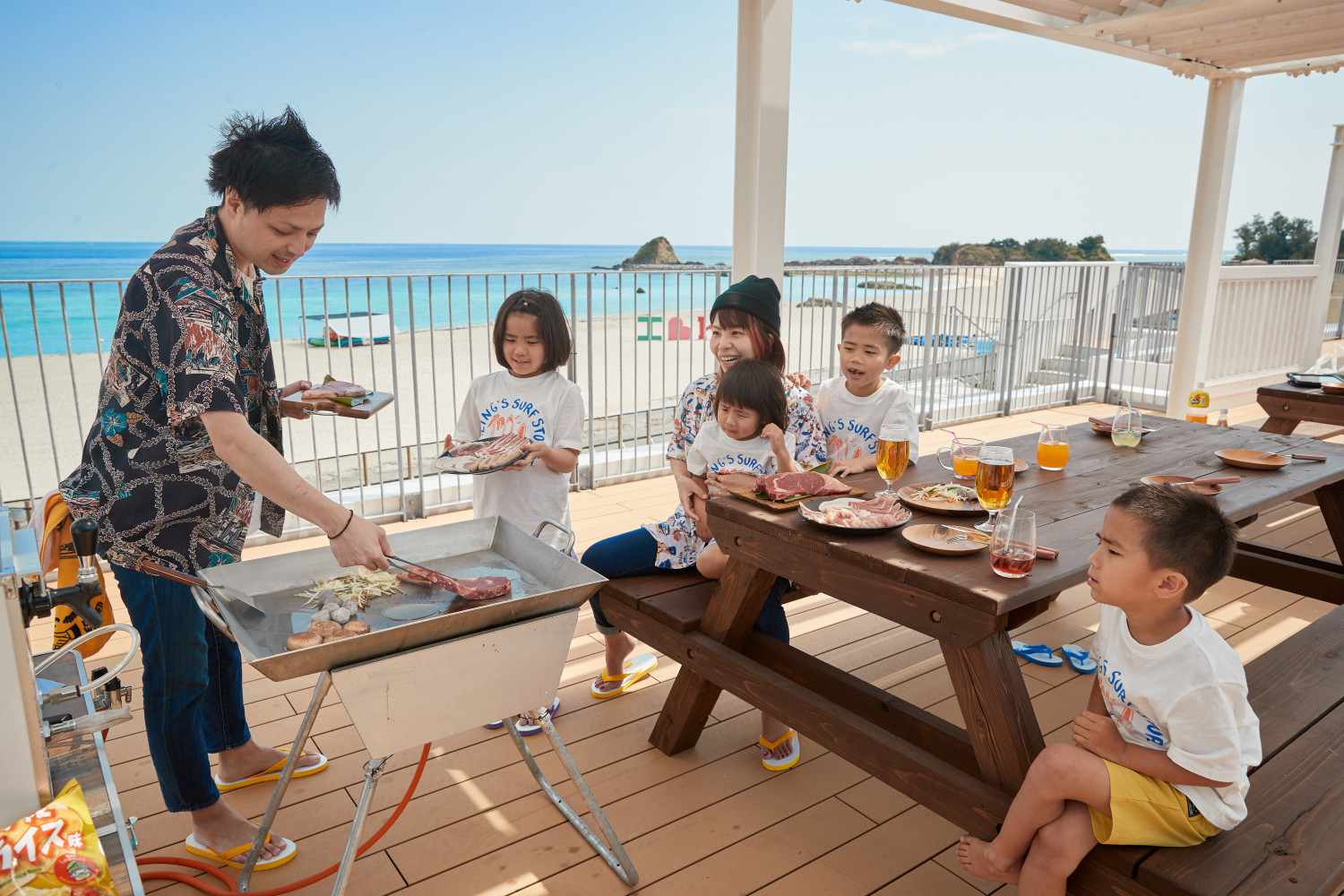 2022年9月にオープンしたKIN サンライズビーチ海浜公園は私たちが指定管理者として運営しています。800メートルのロングビーチは、沖縄県内最大級のスケールで、グループやご家族でお越しいただきのびのびと楽しんでいただけると思います。また、会社の研修旅行など、この広さを利用していろいろな活用もできると思いますので是非、ご相談ください。