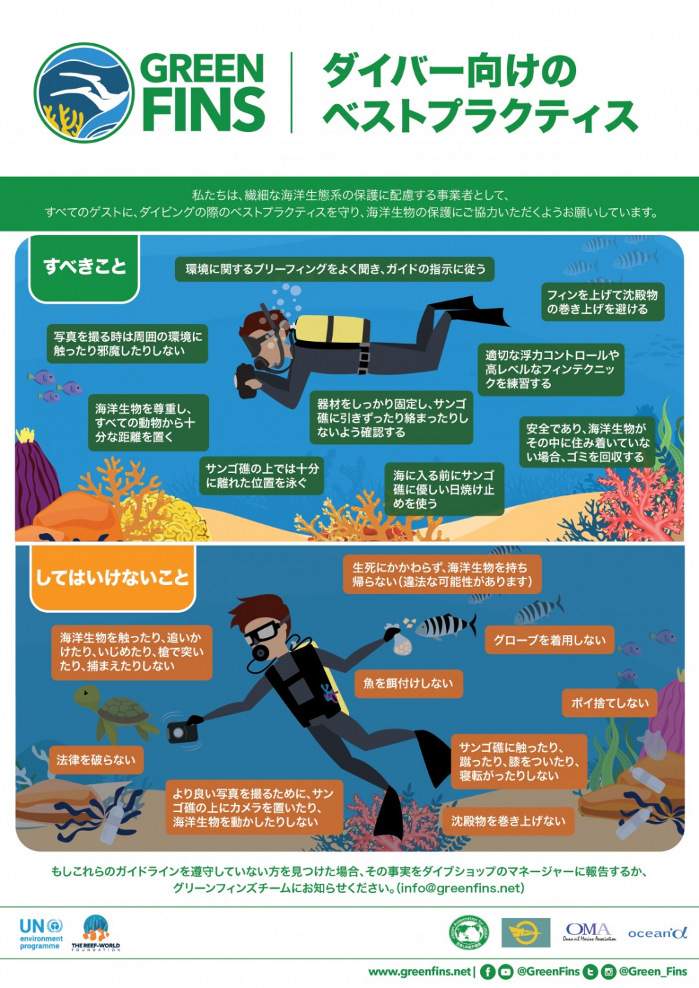 Green Fins(グリーン・フィンズ)は、UNEP(国連環境計画)とイギリスのReef World財団によるサンゴ礁保全の取組みです。