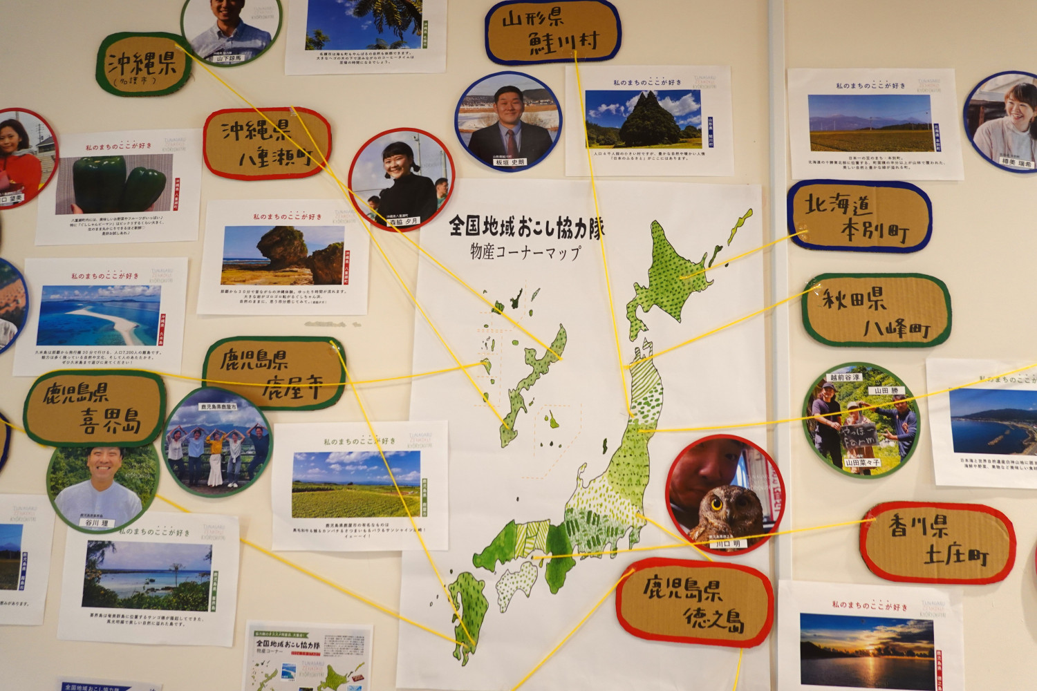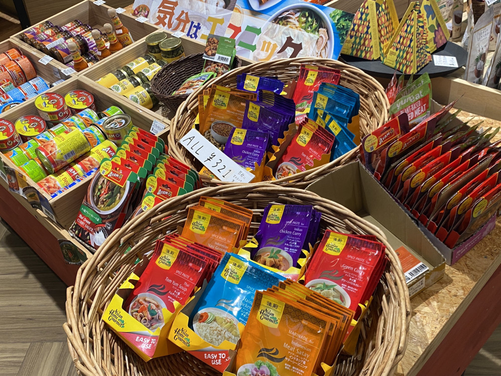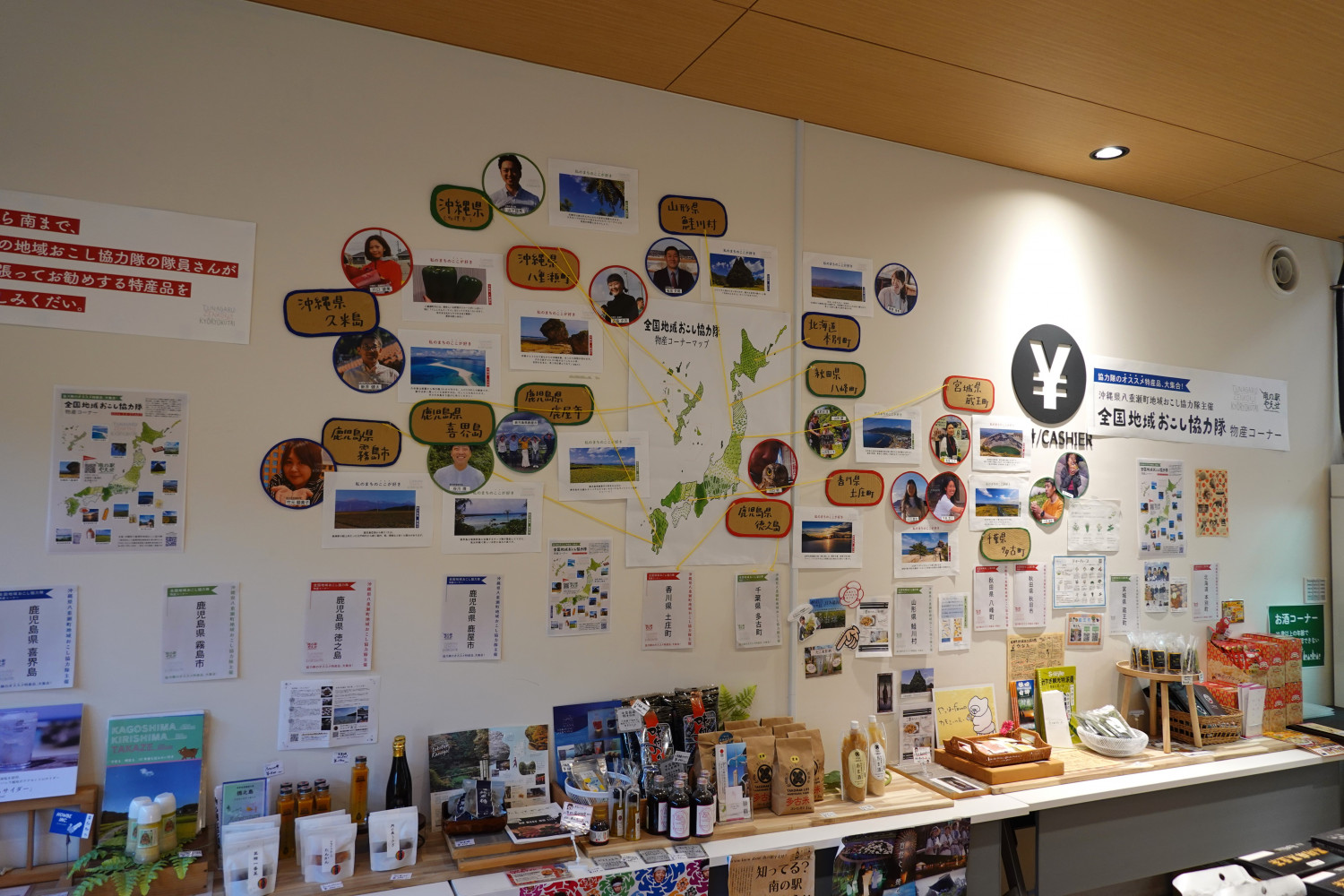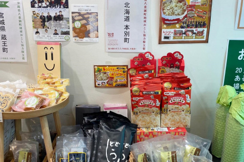 壁面には、それぞれの地域の特産物を集めた「全国地域おこし協力隊物産コーナー」があります。