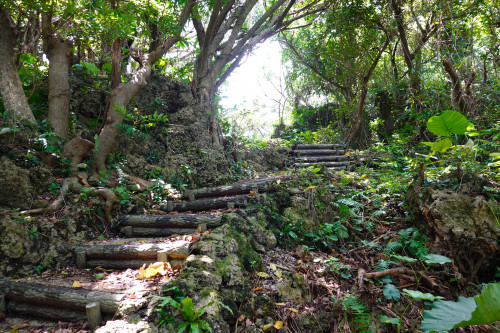 草木が揺れる心地よい音と風の中で散策していると近づいてくる波の音…