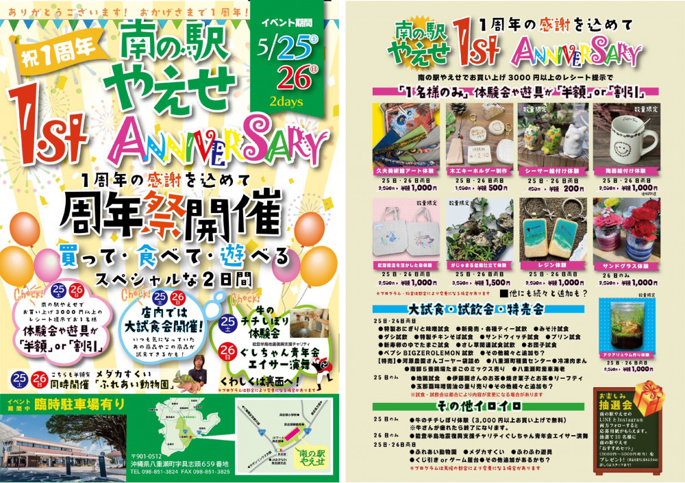 2024年5月25日(土)26日(日)にはリニューアルオープン1周年を記念したイベントが開催されます。是非、お越しください!お待ちしています!