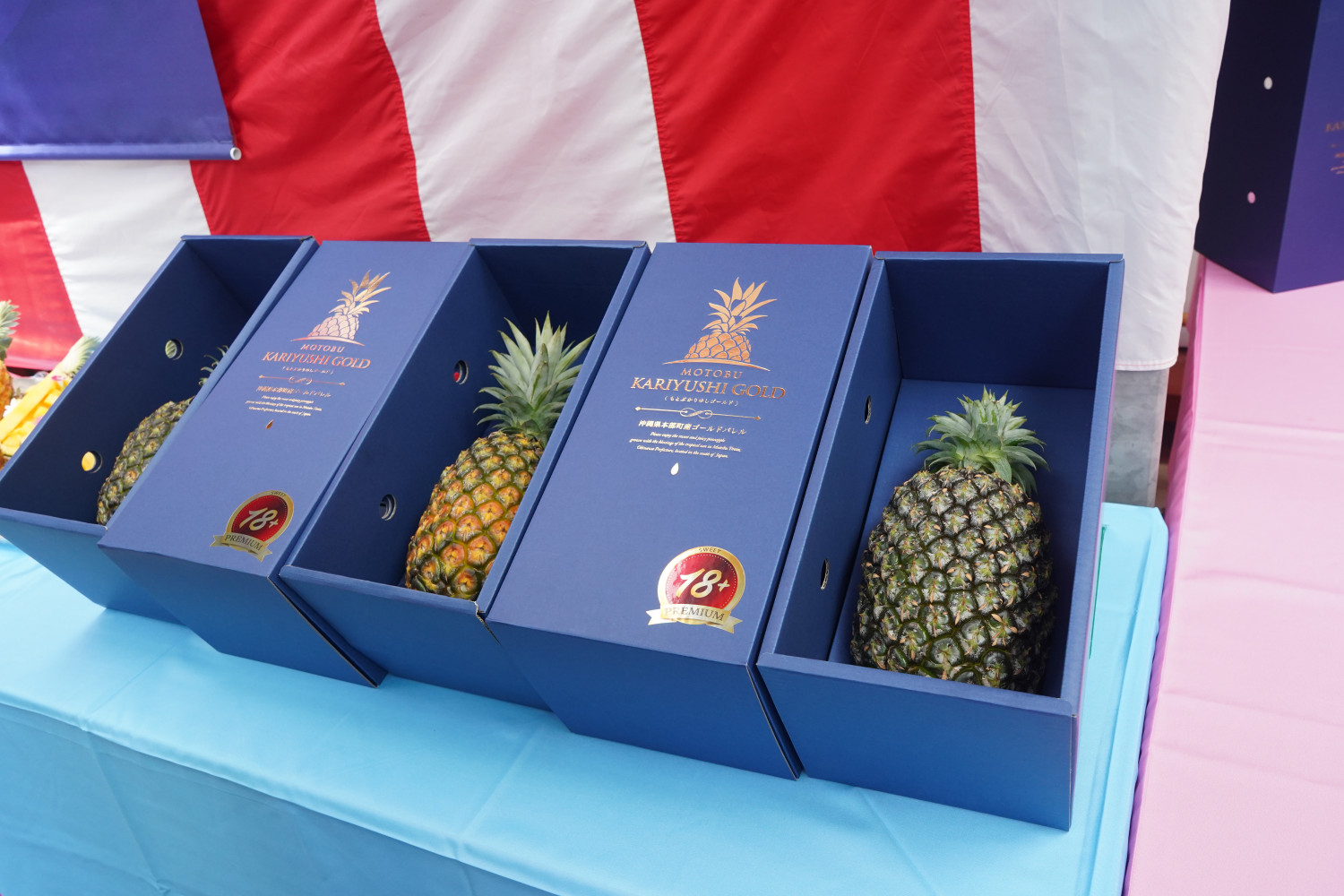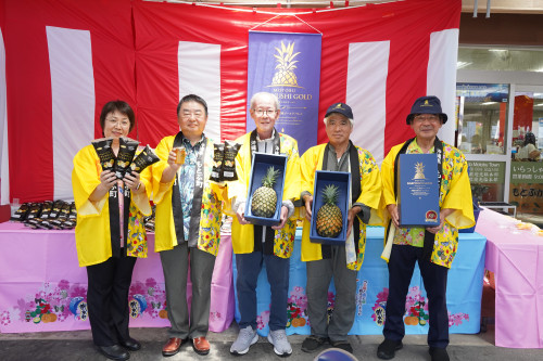 もとぶかりゆしゴールドは、本部町産のゴールドバレル(パイナップル)をブランド化したもので、果汁が多くジューシーで芯まで柔らかく食べられるのが特徴です。本部町では、2016年から、糖度15度以上、1.5㌔以上のものをブランド化しており、2020年度は13㌧だった生産量が、2024年度は40㌧を見込んでいます。