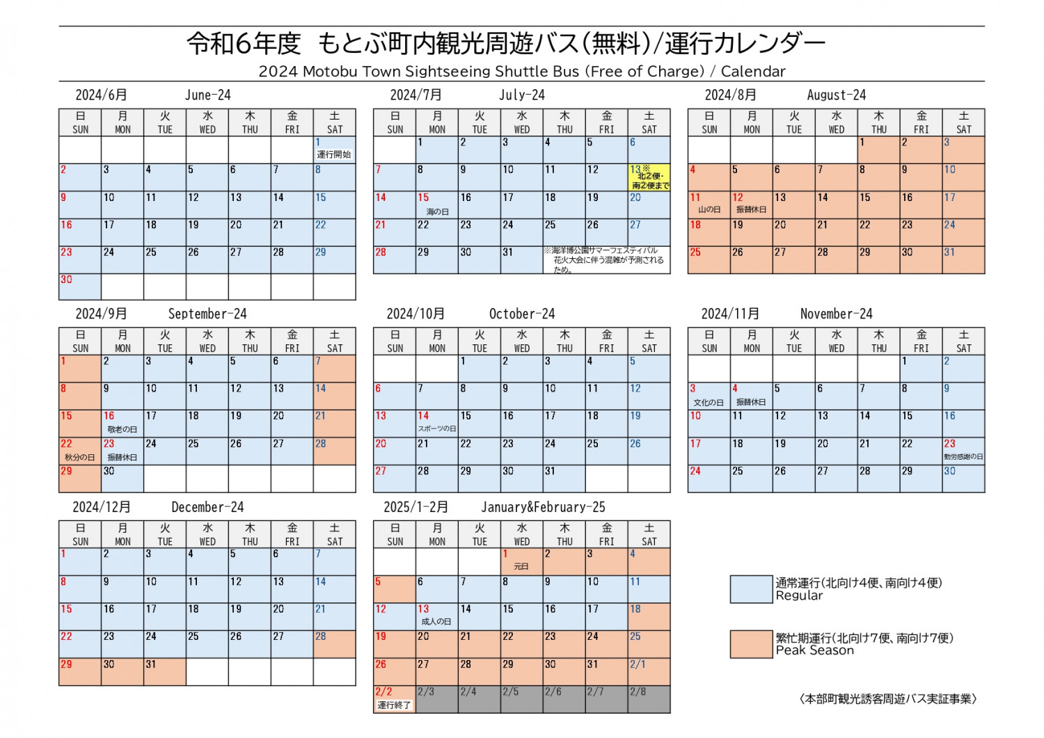 もとぶ町内観光周遊バス2024(無料)