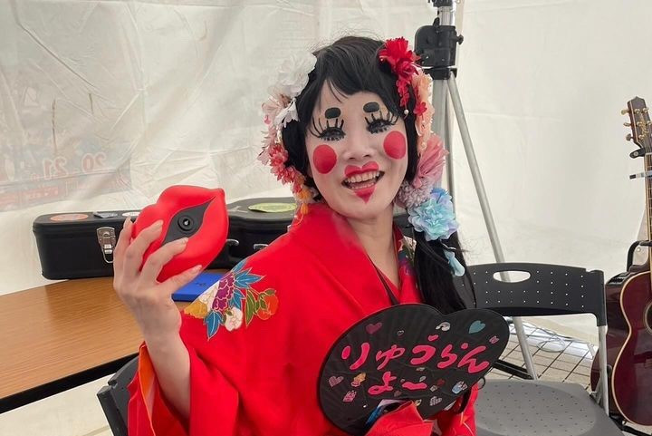 りゅうらんは、オリジナルソングと独特のトークで町内のいろんなところに現われては笑いと元気をふりまいています。