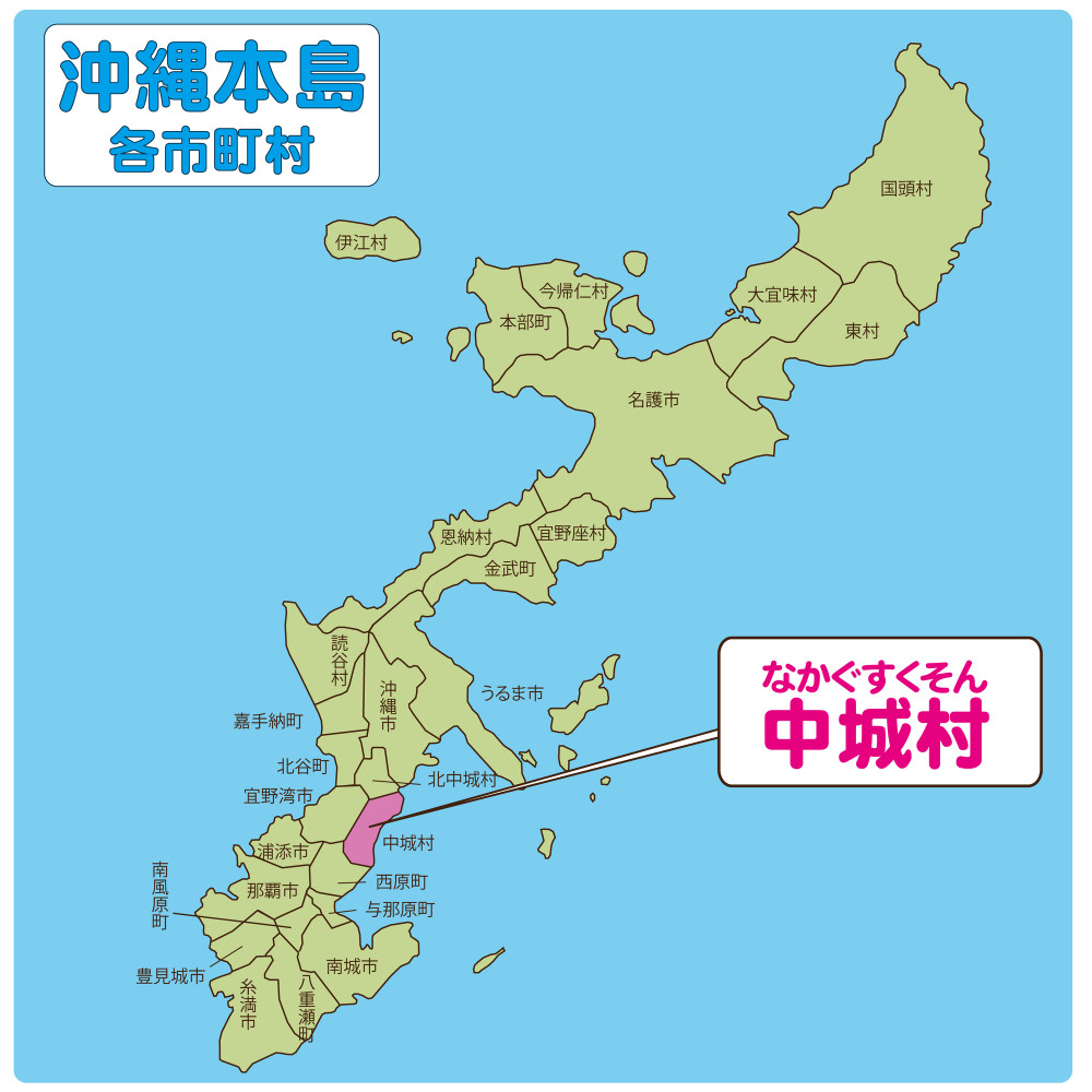 本島中部の東海岸・中城湾に面した、豊かな自然と歴史ある景観に恵まれた村。沖縄の伝統的農産物の一つ、島にんじんの特産地としても知られています。村の中央部には南北にゆるやかな丘陵があり、その丘陵地に築かれた世界遺産「中城城跡(なかぐすくじょうあと)」からは、中城湾をはじめ西に東シナ海、北に勝連半島、南に知念半島を一望でき、景勝地としても人気。かつてペリー一行が調査で訪れたとも伝えられています。