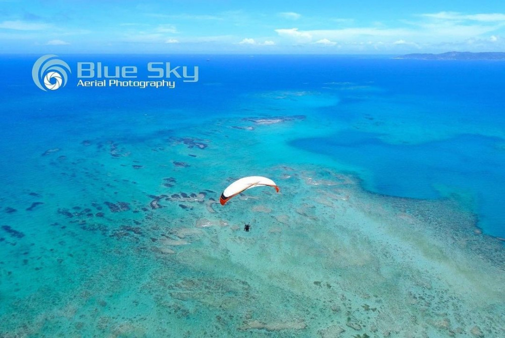 白い砂浜からふわり空中に浮き上がればまるで大空を翔ける鳥の気分!超安定した海風に乗り上空200mから望む沖縄の美ら海はまさに「絶景」です。カメラを持って空中散歩へ出かけましょう!ベテランパイロットと一緒にフライトするので初めての方でも安心して参加できます。