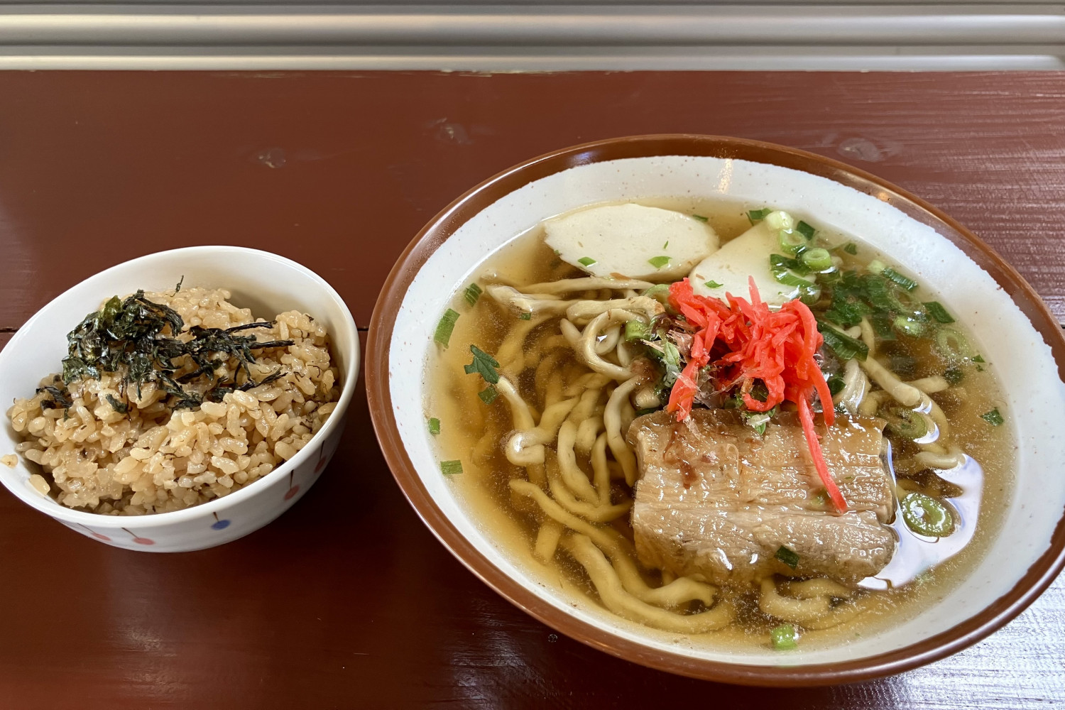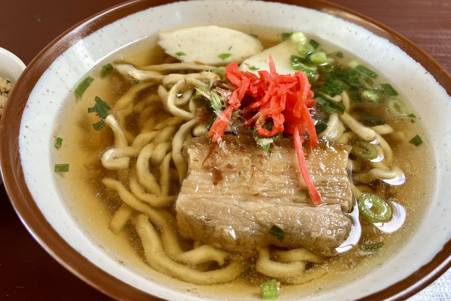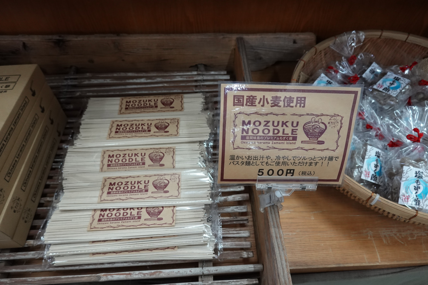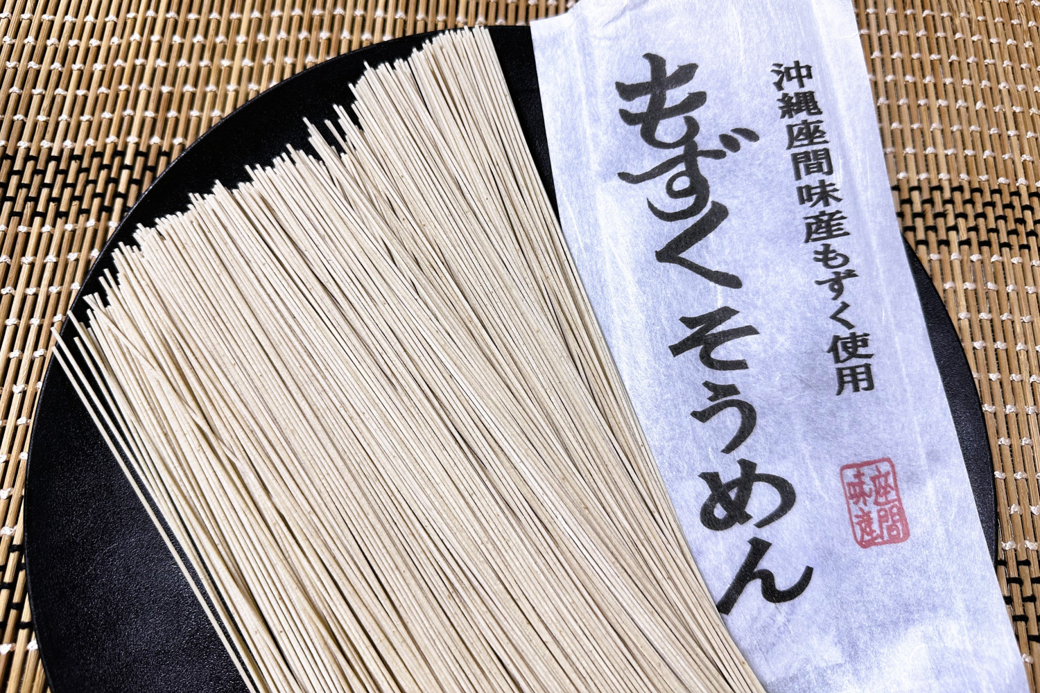 麺にもずくのぬめりを感じ、他の沖縄そばではなかなか無い触感。もずくの風味も感じられ、クセがないので食べやすい。座間味島にある和山海雲(わやまもずく)で実食可。
