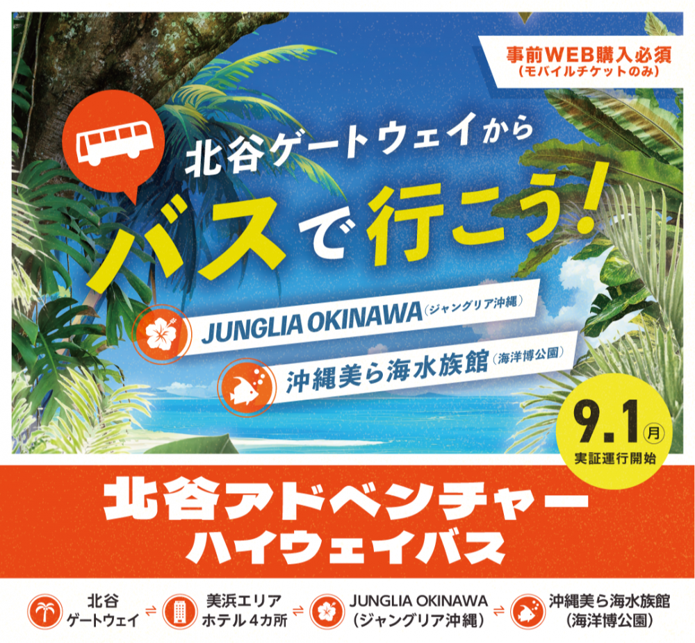 北谷アドベンチャーハイウェイバスを利用してジャングリアや沖縄美ら海水族館へGO!
