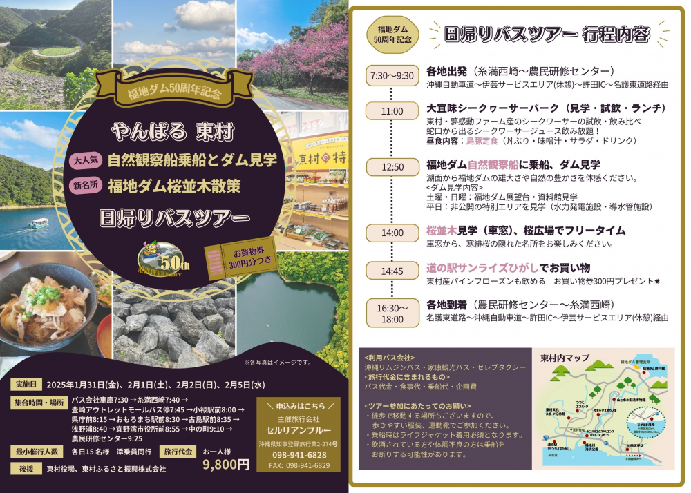 【福地ダム50周年記念】やんばる東村日帰りバスツアー実施概要