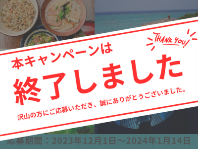 2023年12月1日(金)~2024年1月14日(日)の期間中、沖縄気分を味わえる詰め合わせセットが計5名さまに当たる、フォトキャンペーンを開催いたします。応募条件は、おきな...