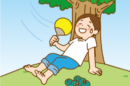 | え | 炎天下を避けましょう。炎天下での海水浴は避けてください。涼しい服装をして日傘や帽子を使用してください。少しでも体調が悪くなったら、涼しい場所へ移動してください。 |