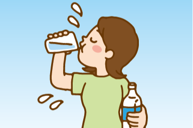| こ | こまめに水分補給をしましょう。のどが渇いていなくても、1日あたり1.2Lを目安に水分補給してください。大量に汗をかいたときは塩分補給も忘れずに。 |