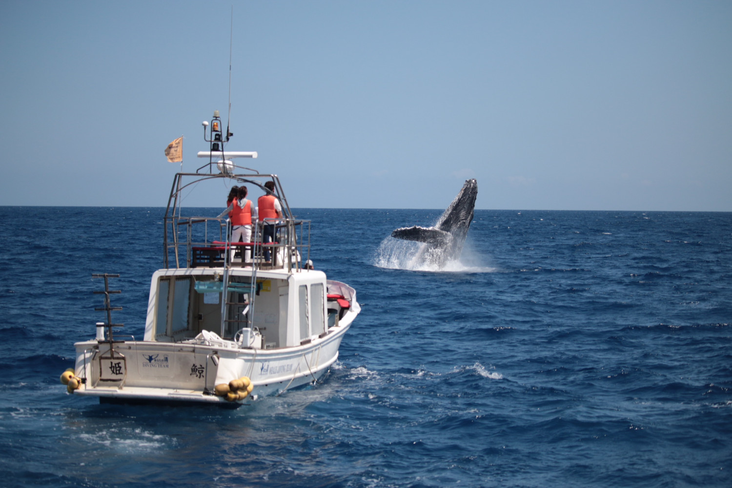 沖縄ではこの時期、連日のように沖縄本島や座間味島からツアーの船が出ており、座間味島沖まで行って間近に迫力満点なザトウクジラを観察することができます。その遭遇率は90%以上ともいわれており、感動的な体験になること間違いなし!