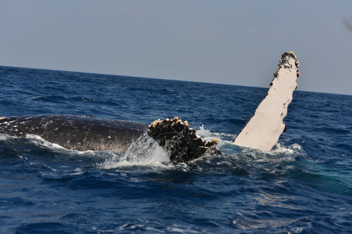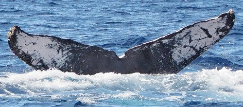 クジラの個体識別は、尾ビレの白黒の模様や縁のギザギザで見分けますが、性格や行動もみんな違っていて、楽しいです。