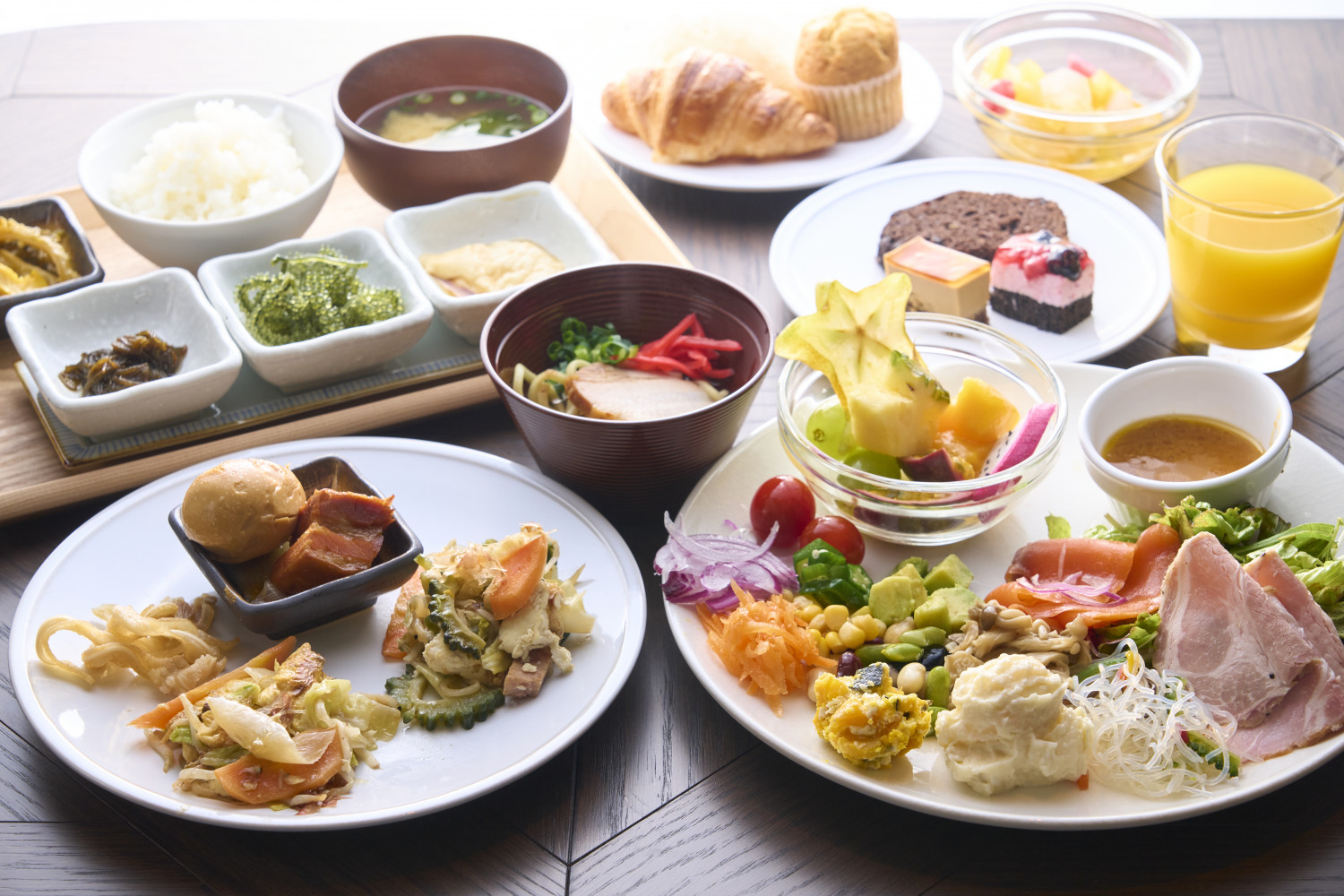 沖縄県産食材を使った料理が楽しめる「オール デイ ダイニング ジノーン」や屋内バーデプール、サウナ、岩盤浴が完備している「スパエリア」があるので室内でも快適に過ごせます。
