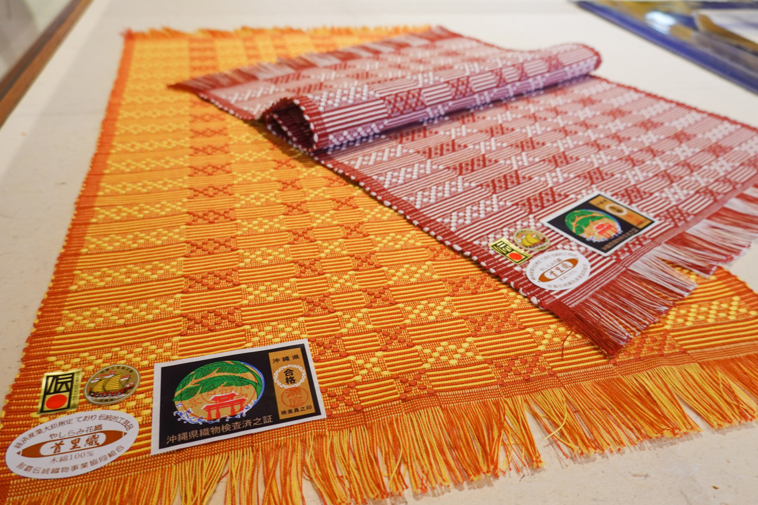 「首里織」は那覇市首里に伝わる首里織は格調高く洗練された織物で最も格式の高い織物の「花倉織」や、平織に経糸を浮かせた道屯織(ろーとんおり)など美しく多種多様な織りが特徴です。