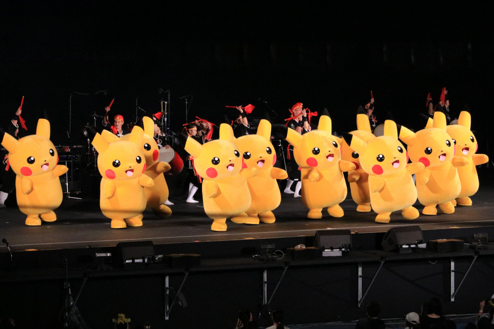 ライブショーでは、琉球國祭り太鼓の皆さんによる演奏に合わせてピカチュウがダンスを披露!