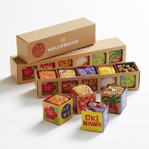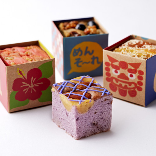 4月18日(月)、那覇市にオープンした「MELLOWHICH」。40種類以上の絵柄と7種類のフレーバー(今後10種類に増える予定)のパウンドケーキが店内に並び、好みのものをおしゃれにデザインされたパッケージに詰め合わせることができます。沖縄ならではの「さんぴん茶」「濃厚塩キャラメル」「ハイビスカス」「しっとりマンゴー」「ごろごろパイン」「ほっこり紅いも」「黒糖ショコラ」などのフレーバーはお土産にもぴったり!