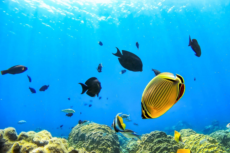 マスクやシュノーケルをつけて海の中を覗くと、見たこともない色鮮やかな魚たちが泳ぐ世界が広がります。陸からのきれいな景色だけでなく、美しい海の中もぜひ堪能してください!