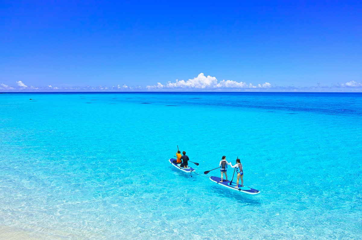 立ちながらパドルを漕ぐので、高い視点から透明度の高い沖縄の海を楽しめます。青い空を眺めながら心と体も癒されてくださいね!