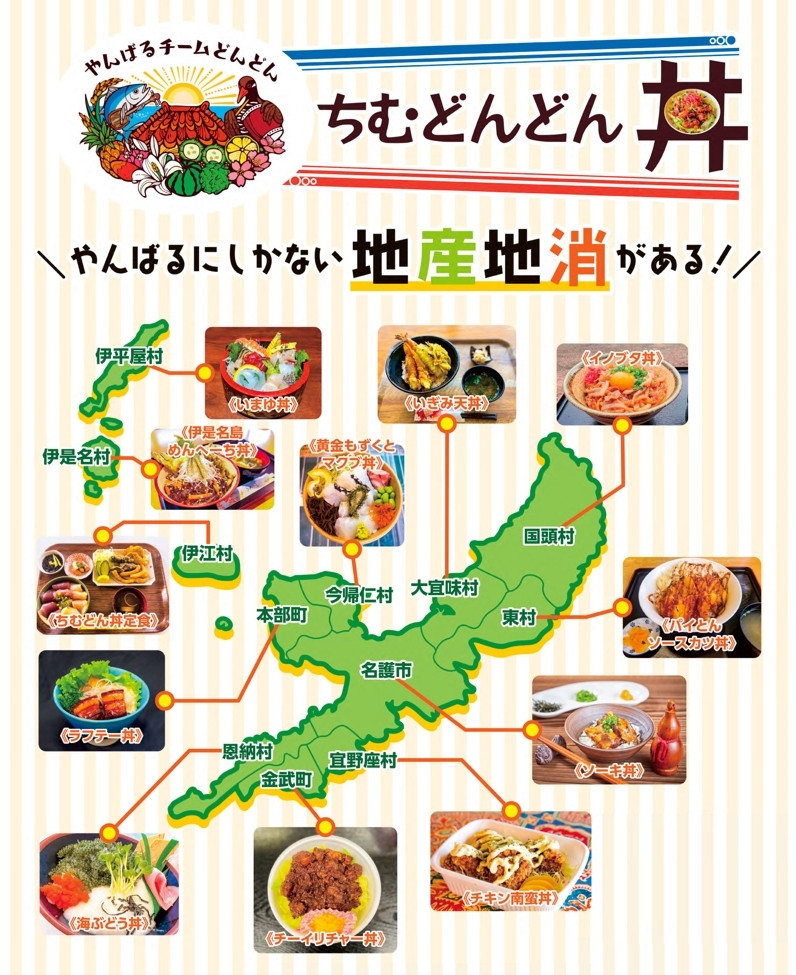 やんばるチームどんどん協議会の當山清博会長は「12市町村、それぞれの地元で獲れた野菜・魚・肉を使った丼を考案しました。これらを味わいながら各地域に眠っている唄やことばを聞いたり見たりしてちむどんどんしていただきたいです」と話しています。